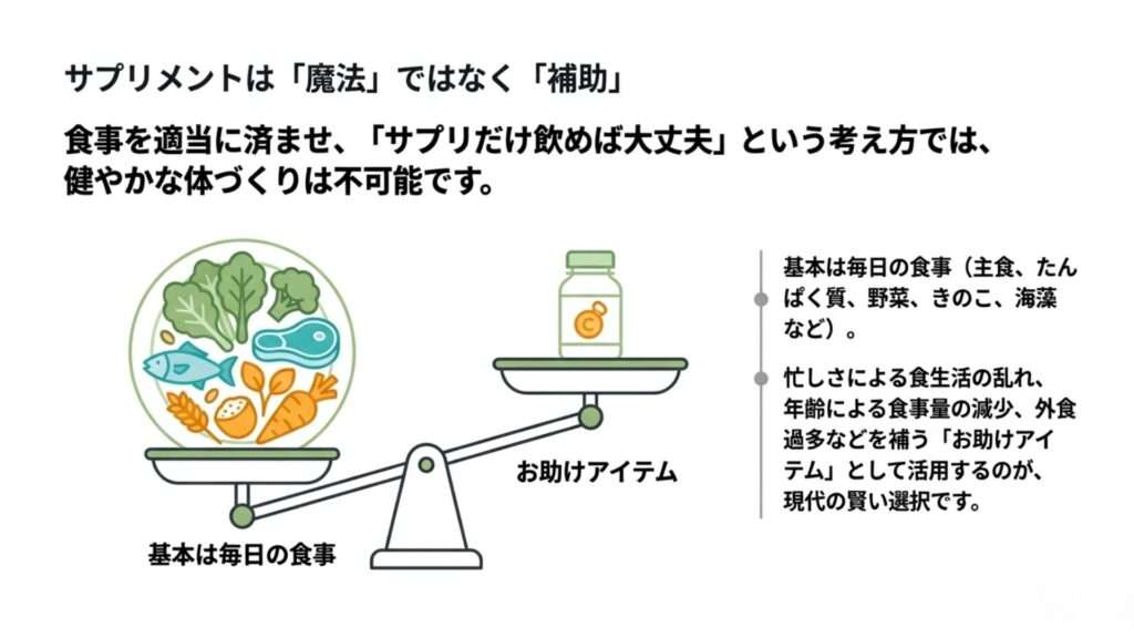 サプリメントは、必要に応じて補うものです。